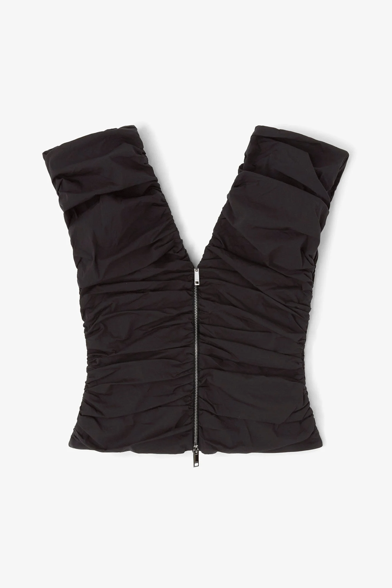 This top features a v-neckline, two-way zip closure and ruching along the bodice. DETAILS - 97% Organic Cotton, 3% Elastane Learn more about our materials - V-neckline - Two-way zip closure - Ruching Made in: India Product ID: A1040071 SIZE & FIT - Slim fit - Tia is 5’10” and wears a size US 4