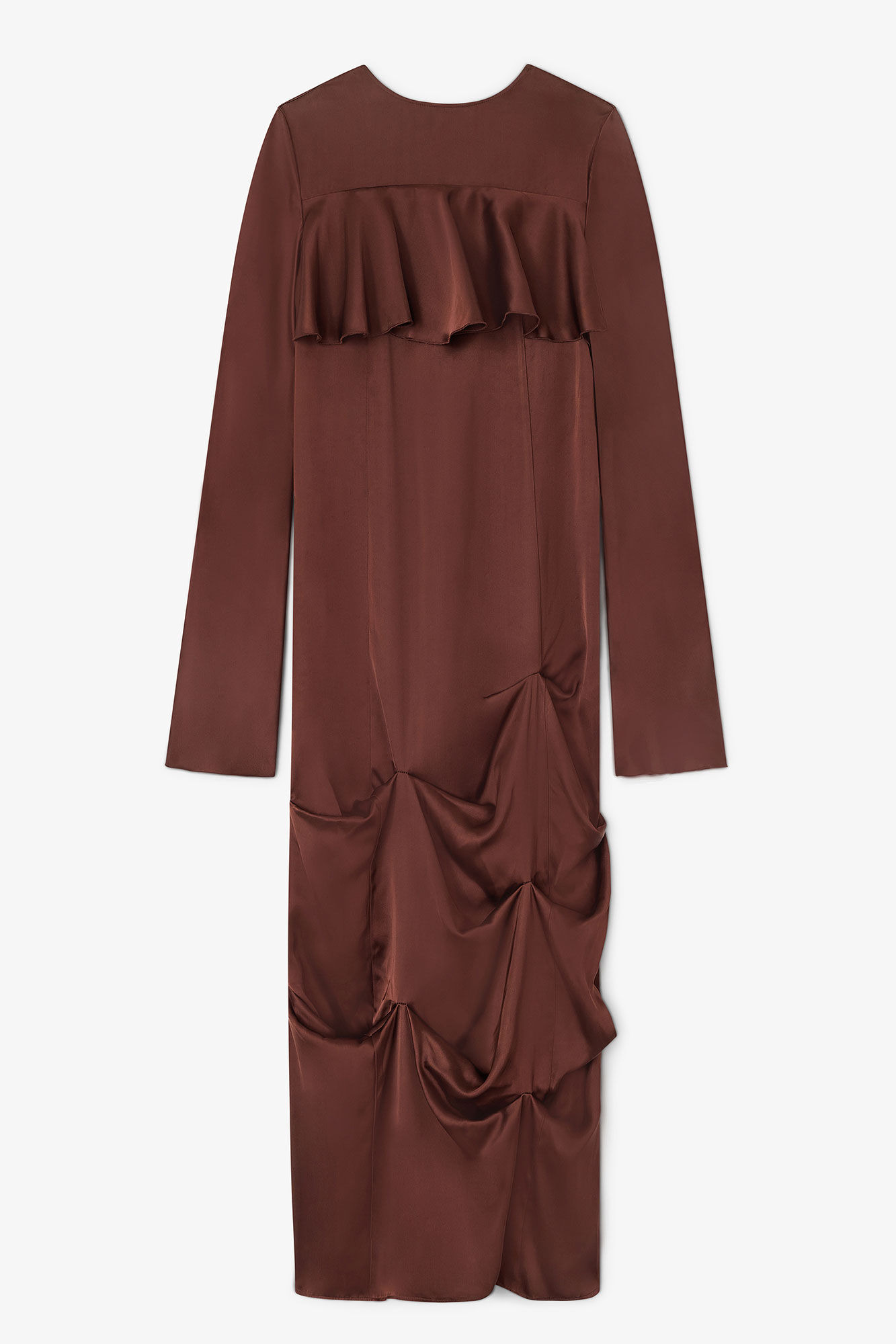 This dress features a round neck, a ruffle detail, draping at the hem and an open back with tie strings. DETAILS - 100% viscose. Learn more about our materials - Round neck - Long sleeves - Ruffle detail - Draping at hem - Open back with tie strings Made in: China Product ID: W0805 SIZE & FIT - Regular fit - Maxi length - Yaniris is 5’11” and wears a size US 4 - For personalised guidance on sizing and fit, contact our Customer Service team - here - .