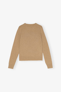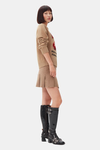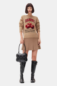This Camel Graphic Cherry Sweater features a round neckline, long sleeves, ribbed edges and a graphic GANNI motif. DETAILS - 45% wool, 35% recycled wool, 20% recycled polyamide. Learn more about our materials - Round neckline - Long sleeves - Ribbed edges Made in: Romania Product ID: K2320 SIZE & FIT - Designed for a regular fit - Fits true to size, take your normal size - Regular fit - Ariunzul is 5’9” and wears a size S
