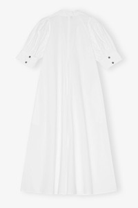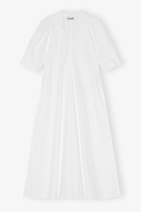 This Cotton Poplin V-Neck Midi Dress is made from organic cotton and is designed for a slim fit through the bust. The dress features a V-neckline, collar, puff sleeves, buttoned cuffs, side pockets and a box pleat at the front and back. DETAILS - 100% organic cotton. Learn more about our materials - Slip-on style, no closure - Seam details - Two side pockets - Puff sleeves Made in: India Product ID: F7127 SIZE & FIT - Designed for a slim fit through the bust, regular fit from the waist down - Take your normal size to achieve the model's look, consider taking a size up for a looser fit - Slightly stiff, lightweight cotton poplin fabric - Rebeca is 178 cm and wears a size 34