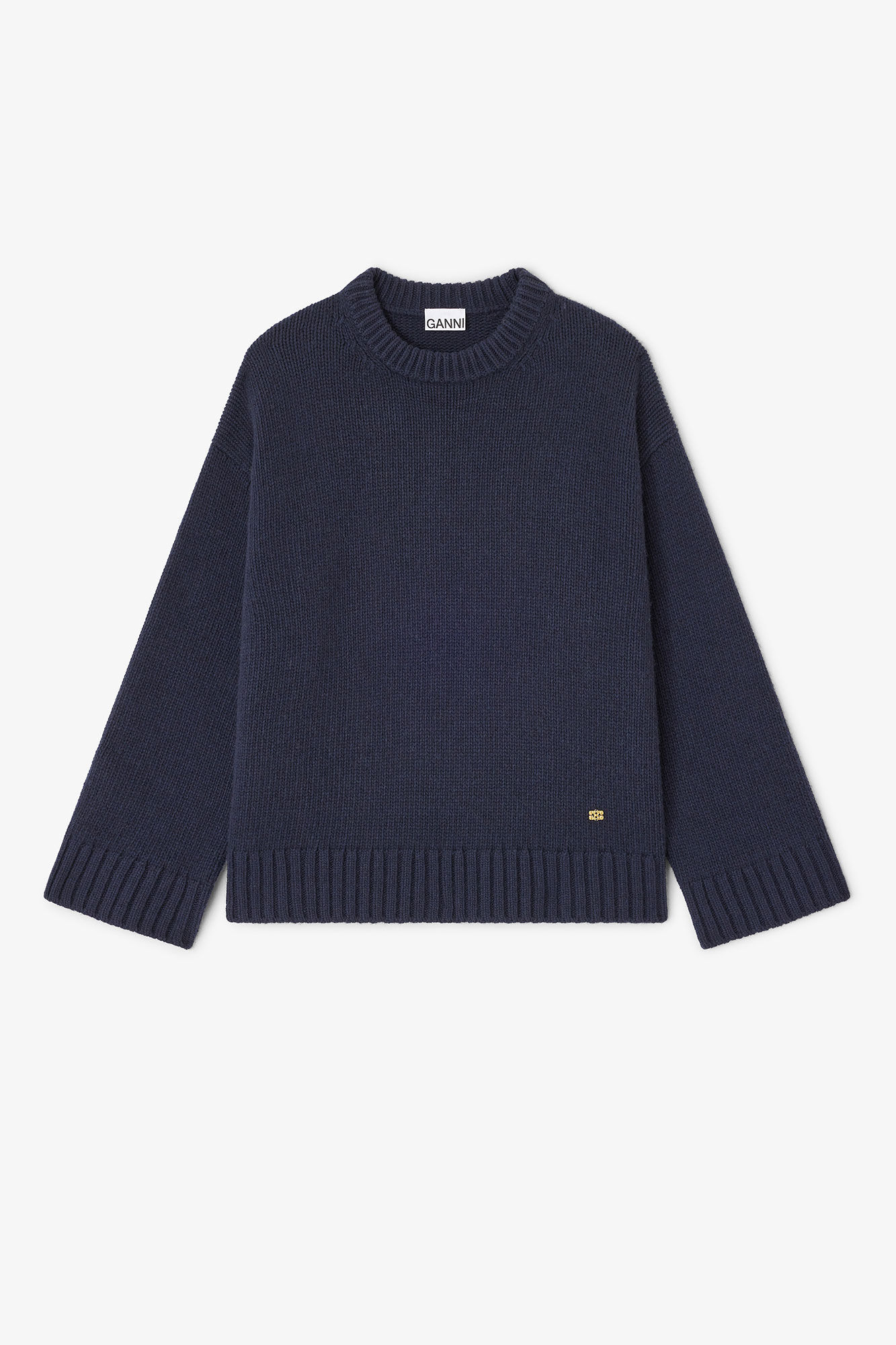 This sweater features a round neckline, long sleeves, ribbed edges and a GANNI Butterfly logo. DETAILS - 45% wool, 35% recycled wool, 20% recycled polyamide. Learn more about our materials - Round neckline - Long sleeves - Ribbed edges - Gold-tone GANNI Butterfly logo Made in: Romania Product ID: K2554 SIZE & FIT - Regular fit - Lena is 5’9” and wears a size S/M - For personalised guidance on sizing and fit, contact our Customer Service team - here - .