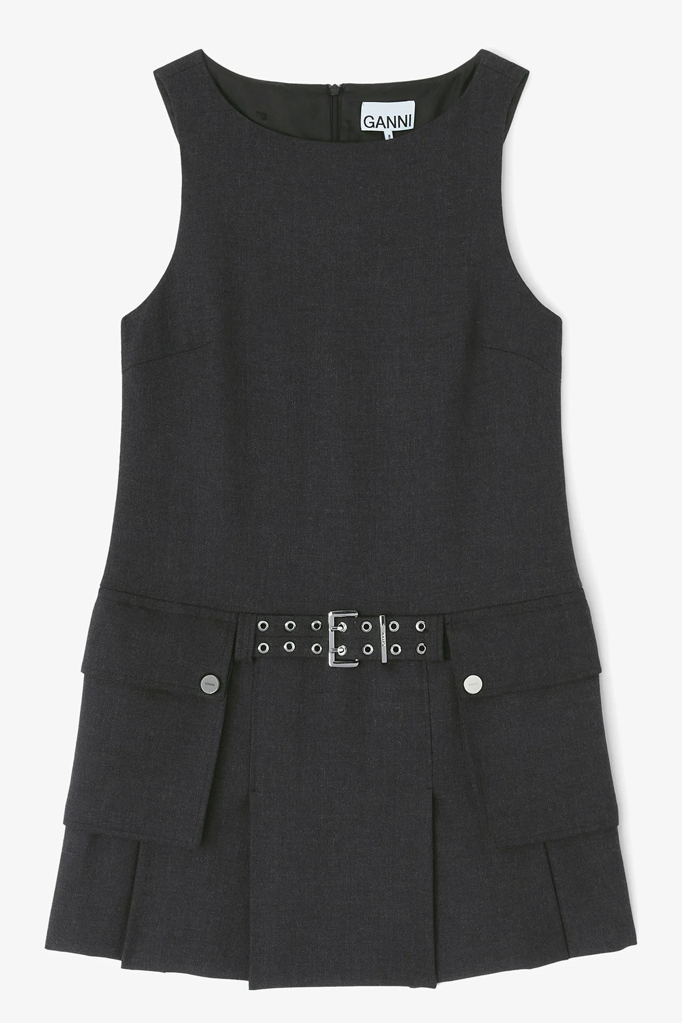 This dress features a round neckline, zipper closure, belt detail, 2 front pockets and a pleated skirt. DETAILS - 55% Recycled Polyester, 45% Recycled Wool Learn more about our materials - Lining composition: 57% Acetate, 43% Viscose - Round neckline - Sleeveless - Zipper closure - Belt loops - Belt detail - 2 pockets - Pleats Made in: Portugal Product ID: A1030115 SIZE & FIT - Regular fit - Mini - Lilli-zoe is 5’9” and wears a size US 4