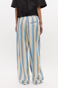 These pants feature a multicoloured ombre stripe pattern with an elasticated drawstring waistband, 3 pockets and a GANNI logo patch at the back. DETAILS - 100% organic cotton. Learn more about our materials - Multicoloured ombre stripe pattern - Elasticated waistband with drawstring - Decorative fly stitching - 3 pockets - GANNI logo patch - Wide hem detail Made in: Turkey Product ID: W0650 SIZE & FIT - Relaxed fit - Chen is 5’10” and wears a size US 4