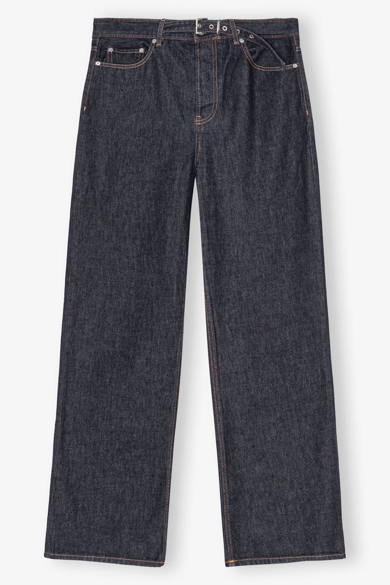 These Rinse Belt Izey Jeans feature 5 pockets with belt loops, a zip and button closure and a GANNI logo at the back pocket. The jeans have an integrated belt with an adjustable buckle closure. DETAILS - 100% organic cotton. Learn more about our materials - Lining composition: 100% Recycled Polyester - 5 pocket style with a zip and button closure - GANNI logo at the back pocket Made in: Tunisia Product ID: J1624 SIZE & FIT - Relaxed fit - Renda is 5’10” and wears a size 27