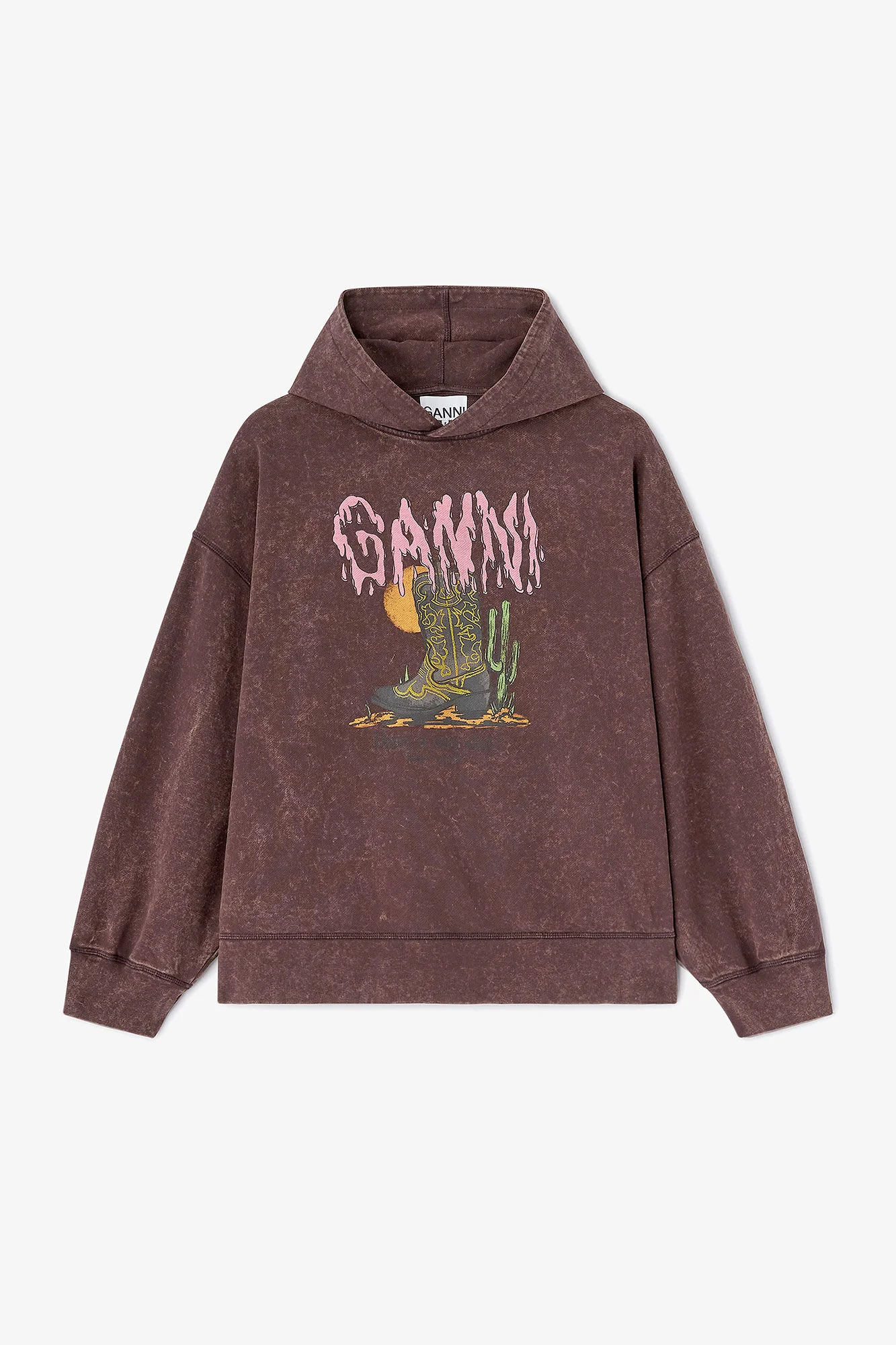 This hoodie features a hood, a GANNI logo and a graphic print. DETAILS - 100% Organic Cotton Learn more about our materials - Hood - Long sleeves with ribbed cuffs - Print graphic - GANNI logo Made in: Portugal Product ID: A1060033 SIZE & FIT - Relaxed fit - Lena is 5’9” and wears a size S - Tia is 5’10” and wears a size S