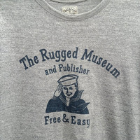 50s Style Free & Easy Warehouse "The Rugged Musseum and Publisher"" Size: M Measurements : Chest : 21.26" Length :28.35" Color: Gray Condition: Gently Used Material cotton *item is used and vintage,dont expected it to be like new* SHIPPING : Kurasi (receiving item within 3-5 working days) - Please leave your phone number PAYMENT : PAYPAL ONLY Thank you for your view and have a nice day IMPORTANT NOTE: Please ask anything you need to know about this item prior to buying.