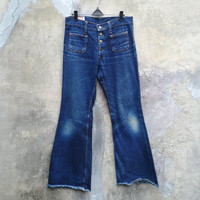 Vintage Savage George Custer & Co Bell Bottom Jeans Size 31 Waist : 31" Inseam : 29.92" Leg Opening : 11.5" Front Rise : 10" Good Condition 8/10 Conditions: please see details picture 🌀An item that has been used or worn previously. See Our listing for full details and description of any imperfections. 🌀Please don’t expect it to be like new or in pristine condition (used clothing) SHIPPING : KURASI (receiving item within 3-5 working days) - Please leave your phone number with tracking number PAYMENT : PAYPAL ONLY Thank you for your view and have a nice day IMPORTANT NOTE: Please ask anything you need to know about this item prior to buying.