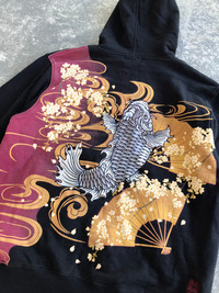 Japanese Brand - Karakuri Tamashii koi fish embroidery zip up hoodie