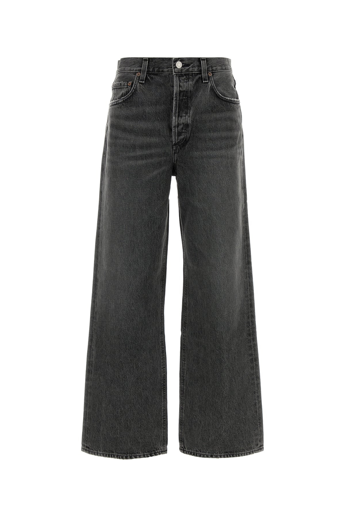 Jeans realized in slightly distressed pure cotton denim. - Belt loops at the waist - Concealed buttons and single visible button closure - Five classic pockets DETAILS Dark grey denim jeans Exterior: 100% Cotton Made in usa Sample size: 26