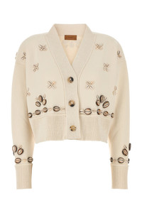 Cropped-cut oversize cardigan realized in silk blend enriched by Seashells details on the entire surface. - V neckline - Buttons closure - Ribbed trimmings DETAILS Ivory silk blend oversize Ocean Dream cardigan Exterior: 94% Silk 6% Nylon Made in italy Sample size: XS