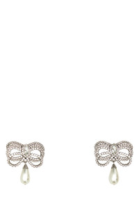 Pendant earrings realized in silver-tone plated metal enriched by rhinestones and pendant pearl. - Clip closure DETAILS Embellished metal earrings Exterior: 100% Metal 100% Rhinestones Finishing color: Silver Made in italy Width: 6 cm Height: 6 cm