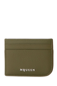 Card holder realized in pebble leather enriched by metal lettering logo at the front. - A slit pocket and four credit card slots DETAILS Army green leather card holder Exterior: 100% Leather Finishing: Silver metal Made in Width: 10 cm Height: 7 cm
