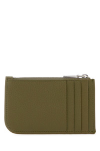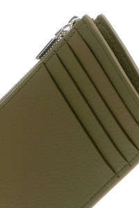 Card holder realized in pebble leather enriched by metal lettering logo at the front. - A zip pocket and four credit card slots DETAILS Army green leather card holder Exterior: 100% Leather Finishing: Silver metal Made in Width: 12 cm Height: 8 cm