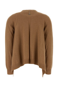 Cropped-cut oversize cardigan realized in cashmere and wool enriched by metal detail at the back. - V neckline - Buttons closure - Ribbed cuffs and hemline - Lateral slits on the hemline DETAILS Biscuit cashmere blend oversize cardigan Exterior: 97% Cashmere 3% Wool Made in italy Sample size: S
