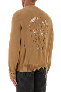 Cardigan realized in pure cotton characterized by intentional rips at the front and Skull-shaped rips at the back. - V neckline - Logoed buttons closure - Ribbed cuffs and hemline - Distressed effect trimmings DETAILS Biscuit cotton cardigan Exterior: 100% Cotton Made in italy Model is 185 cm and is wearing a size M