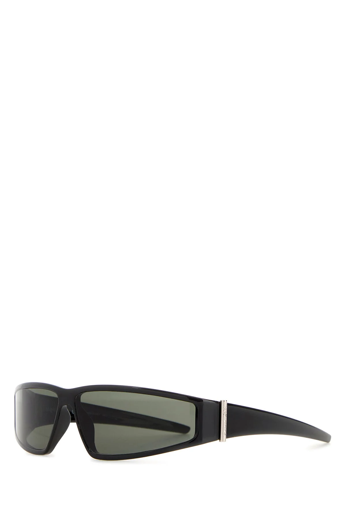 Sunglasses realized in acetate enriched by metal T-Bar detail on the arms. - D-frame - 100% UVA/UVB protection DETAILS Black acetate Wraparound sunglasses Exterior: 100% Acetate Finishing: Silver metal Made in italy