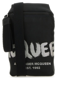 Crossbody bag realized in fabric characterized by contrasting McQueen Graffiti embroidery at the front. - Adjustable tonal fabric shoulder strap - Zip closure - A slit pocket at the back - Lined interior DETAILS Exterior: 100% Fabric Lining: 100% Fabric Finishing: Silver metal Width: 13 cm Height: 19 cm Dept: 3 cm Min shoulder strap length: 56 cm Max shoulder strap length: 66 cm