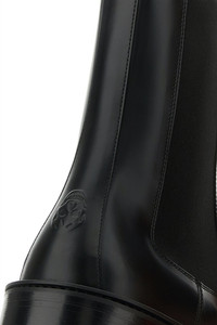 Ankle boots realized in smooth leather characterized by embossed Skull at the back. - Round toe - Lateral elastic inserts - Pull-tab at the back - Printed logo on the inside DETAILS Black leather ankle boots Exterior: 100% Leather Interior: 100% Leather Sole: Leather Made in italy