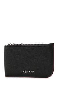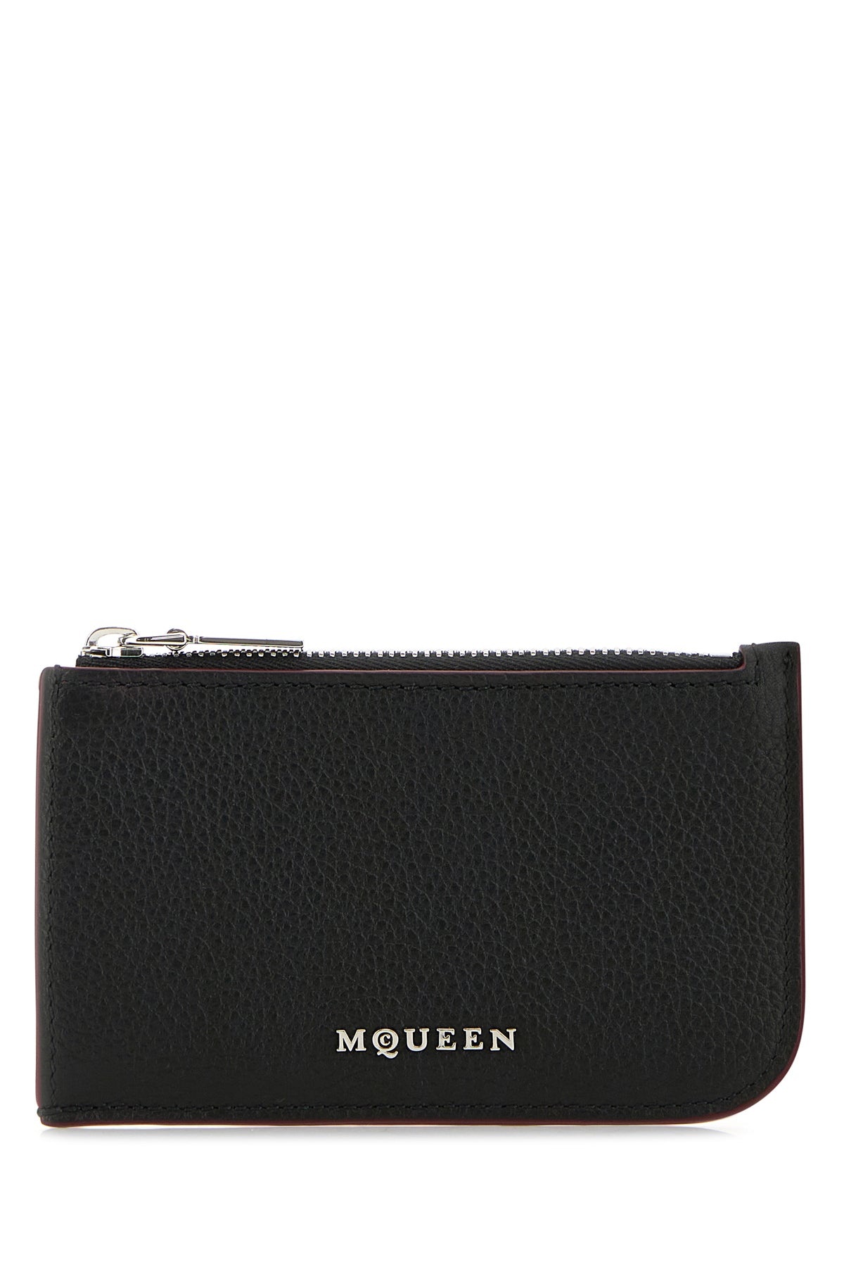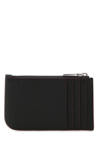 Card holder realized in pebble leather enriched by metal lettering logo at the front. - A zip pocket and four credit card slots DETAILS Black leather card holder Exterior: 100% Leather Finishing: Silver metal Made in Width: 12 cm Height: 8 cm