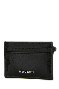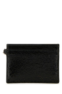 Card holder realized in polished-finish craquele-effect leather enriched by metal lettering logo at the front and peculiar metal chian detail on the side. - A central slit pocket and four credit card slots DETAILS Black leather card holder Exterior: 100% Leather Finishing: Silver metal Made in italy Width: 10 cm Height: 7,5 cm
