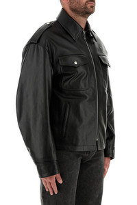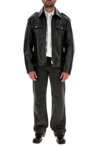 Jacket realized in polished.finish slightly pebble leather characterized by collar. - Zip closure - Drop shoulders - Epaulettes - Chest pockets and two slit pockets at the front - Elastic ribbed cuffs - Adjustable buttoned lateral slits on the hemline - Lined DETAILS Black leather jacket Exteiror: 100% Leather Lining: 100% Fabric Made in italy Model is 185 cm and is wearing a size 48