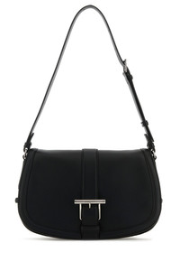 Crossobody bag realized in slightly pebble calf leather enriched by decorative strap with logoed T buckle on the flap. - Adjustable tonal leather shoulder strap - Magnetic button closure - A slit pocket at the back - Lined interior with a zip pocket DETAILS Black leather large Satchel crossbody bag Exterior: 100% Calf Lining: 100% Fabric Finishing: Silver metal Made in italy Width: 35 cm Height: 23 cm Depth: 8,5 cm Min shoulder strap length: 25 cm Max shoulder strap length: 42 cm