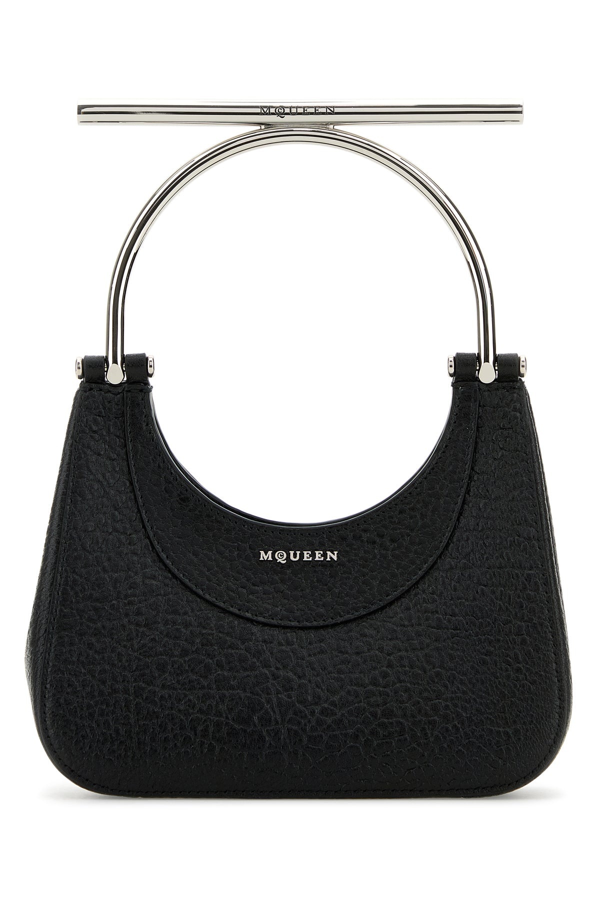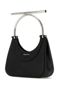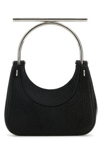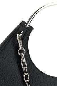 Handbag realized in pebble lamb leather enriched by metal lettering logo at the front. - Metal logoed handle - Detachable metal chain shoulder strap - Magnetic button closure - Lined interior with a credit card slot DETAILS Black leather mini Cross-Bar handbag Exterior: 100% Lamb Lining: 100% Nappa leather Finishing: Silver metal Made in italy Width: 20 cm Height: 17,5 cm Depth: 6 cm Handle height: 17 cm Shoulder strap length: 55 cm