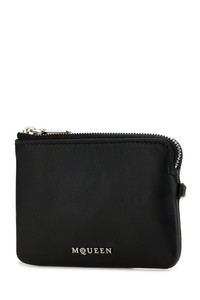 Card holder realized in pebble calf leather enriched by logged metal detail at the front. - Zip closure DETAILS Black leather Sling card holder Exterior: 100% Calf Finishing: Silver metal Made in italy Width: 10 cm Height: 7 cm