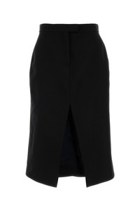 Skirt realized in stretch wool characterized by central ironed slit at the front. - Belt loops at the waist - Concealed zip and hook closure - Slant pockets and a slit pocket at the back - Lined DETAILS Black stretch wool skirt Exterior: 98% Wool 2% Elastane Lining: 74% Acetate 26% Silk Made in italy Sample size: 40