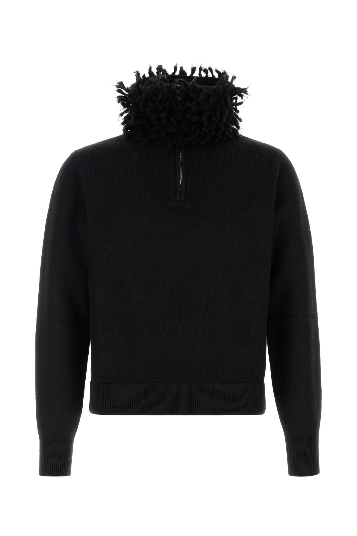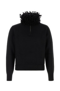 Sweater realized in wool blend characterized by peculiar funnel neck. - Partial zip closure - Ribbed cuffs and hemline DETAILS Black wool blend sweater Exterior: 82% Wool 18% Viscose Made in italy Sample size: M