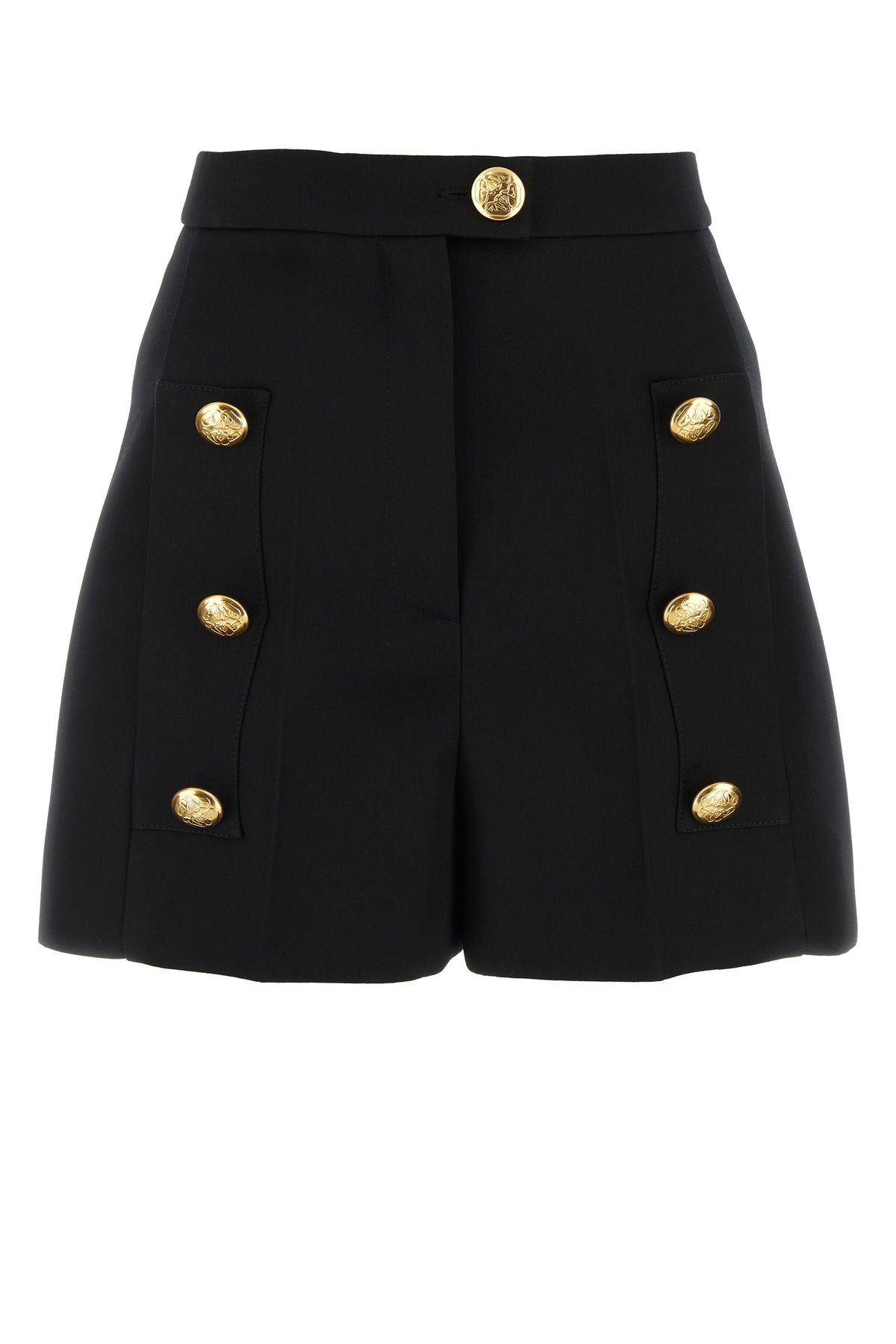 Shorts realized in pure wool enriched by decorative buttons at the front. - Concealed zip closure with a single visibile button - Seam pockets and two slit pockets at the back DETAILS Exterior: 100% Wool Made In Italy Model is 180 cm and is wearing a size 38