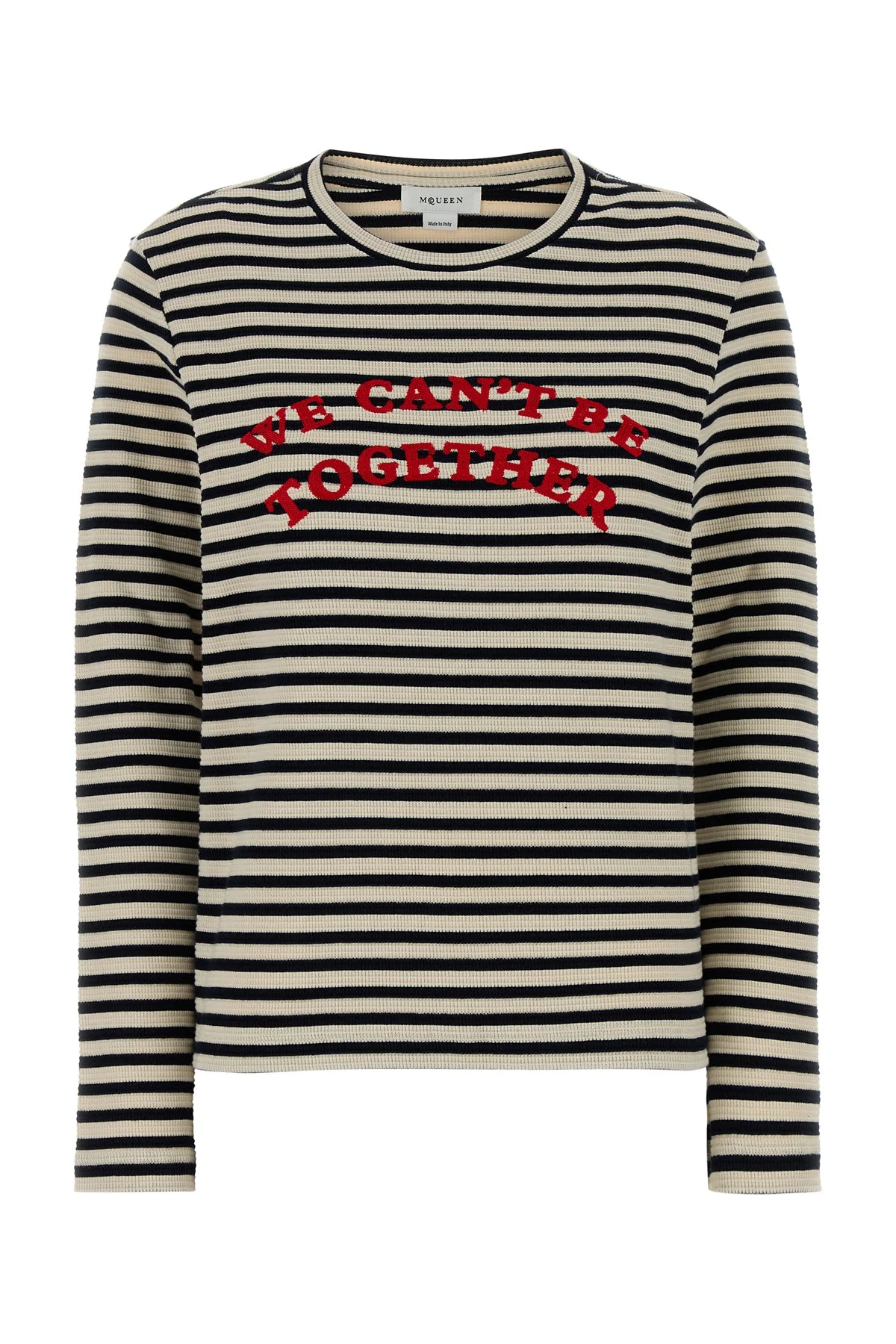 Long sleeves t-shirt realized in stretch cotton characterized by striped embroidery on the entire surface and peculiar embroidery on the chest. - Ribbed crew-neck - Embroidered logo at the back DETAILS Embroidered stretch cotton t-shirt Exterior: 98% Cotton 2% Elastane Made in italy Sample size: 40
