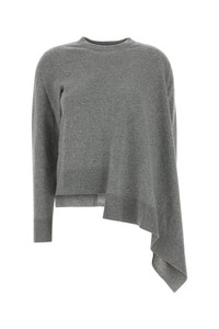 Sweater realized in cashmere and wool enriched by logoed metal detail at the back. - Ribbed crew-neck and cuffs - Asymmetric hemline DETAILS Grey cashmere blend sweater Exterior: 97% Cashmere 3% Wool Made in italy Sample size: S