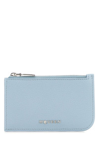 Card holder realized in pebble leather enriched by metal lettering logo at the front. - A zip pocket and four credit card slots DETAILS Light blue leather card holder Exterior: 100% Leather Finishing: Silver metal Made in Width: 12 cm Height: 8 cm