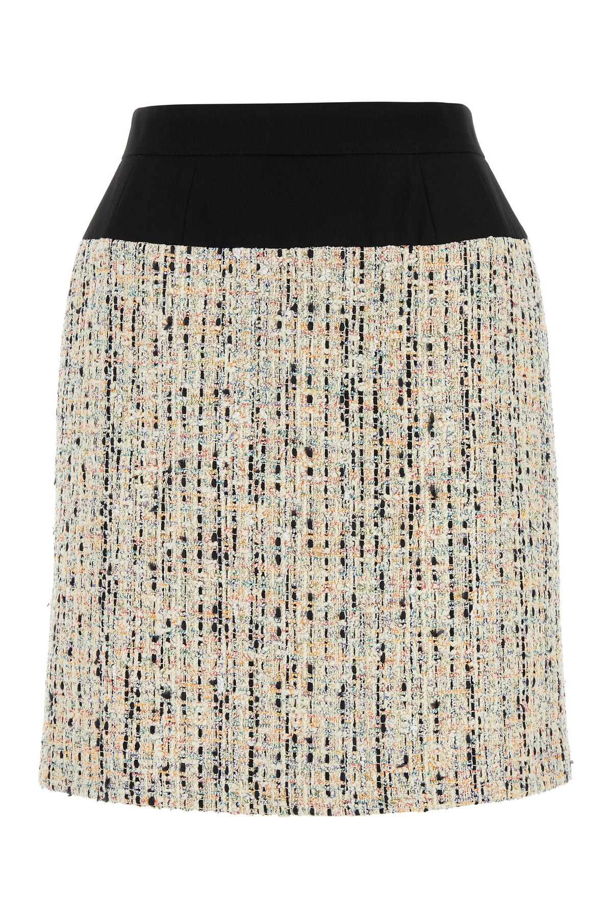 Skirt realized in bouclé with lurex threads and pure wool twill insert at the top. - Concealed zip closure at the back - Lined DETAILS Exterior: 69% Cotton 22% Polyester 7% Nylon 1% Metallised fiber 1% Viscose Lining: 74% Acetate 26% Silk Made In Italy Sample size: 40