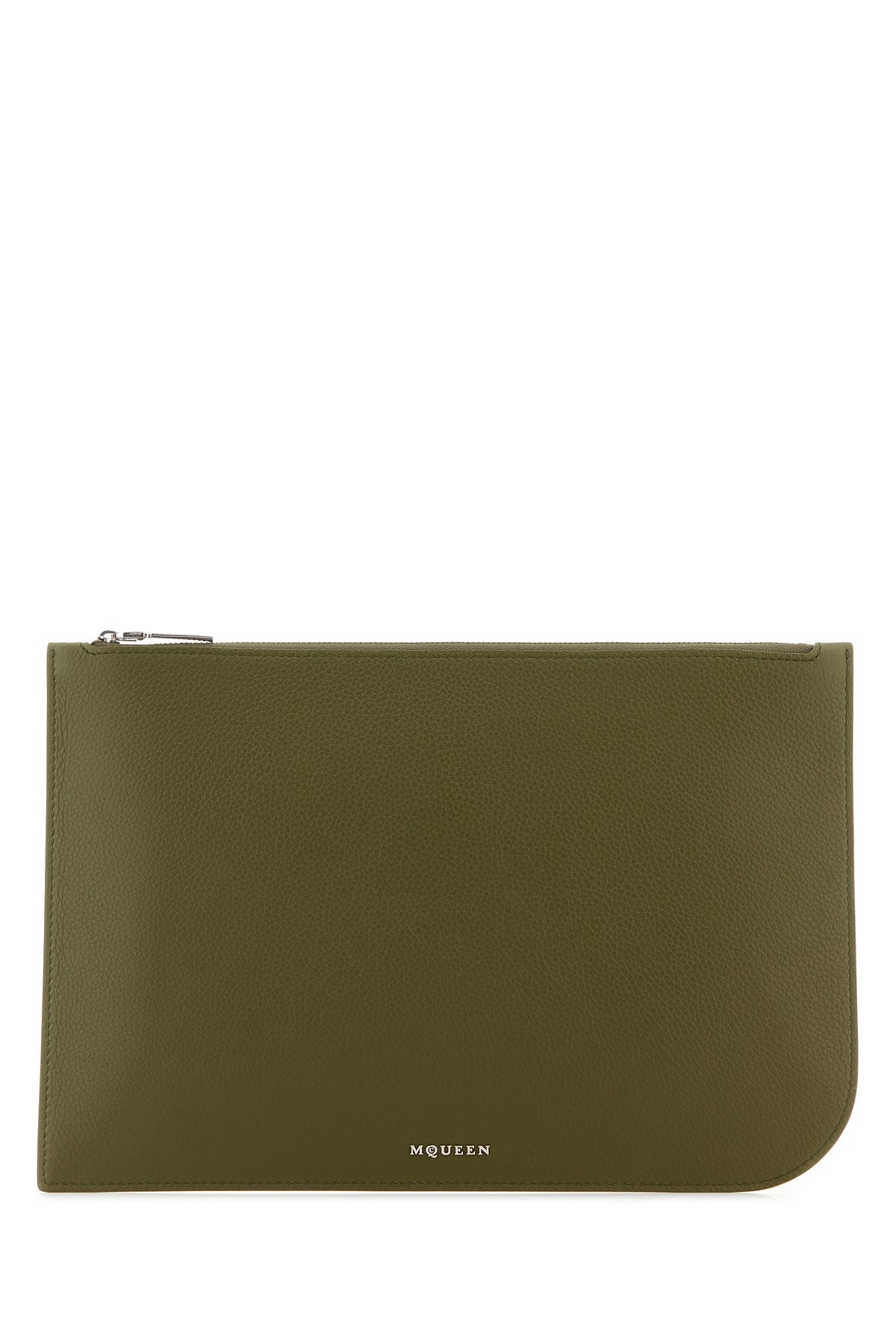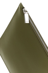 Pouch realized in pebble calf leather characterized by laminated printed logo at the front. - Zip closure - Lined interior with a patch pocket DETAILS Olive green leather large Sling pouch Exteiror: 100% Calf Lining: 100% Leather Finishing: Silver metal Made in italy Width: 31 cm Height: 20 cm Depth: 0,5 cm