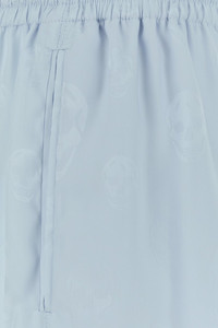 Shorts realized in viscose jacquard characterized by tonal Skull embroidery on the entire surface. - Gathered elastic waist with drawstring - Seam pockets DETAILS Pastel light-blue jacquard shorts Fodera: 100% Viscose Made in italy Sample size: 40