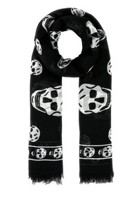 Foulard realized in pure silk chiffon characterized by Skull print on the entire surface. - Fringed hems DETAILS Printed chiffon foulard Exterior: 100% Silk Made in italy Length: 120 cm Height: 104 cm