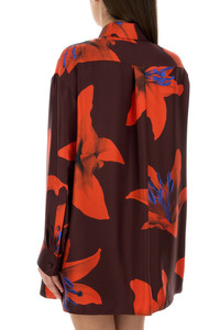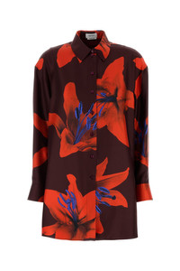 Oversize shirt realized in pure silk satin characterized by floral print on the entire surface. - Short-pointed collar - Buttons closure - Angle cuffs with button - Rear yoke DETAILS Printed satin oversize shirt Exterior: 100% Silk Made in italy Model is 170 cm and is wearing a size 40