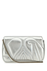 Clutch realized in slightly pebble lamb leather enriched by logoed metal detail at the front. - Detachable metal chain shoulder strap - Magnetic button closure - Lined interior with a slit pocket DETAILS Exterior: 100% Lamb Lining: 100% Leather Finishing: Silver metal Made In Italy Width: 22 cm Height: 13 cm Depth: 5 cm Max shoulder strap length: 55 cm