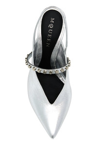 Slingback realized in laminated pebble leather enriched by metal studs on the instep. - Pointed toe - Printed logo on the inside - Stiletto heel DETAILS Silver leather Revel pumps Exterior: 100% Calf Interior: 100% Leather Sole: Leather Made in italy Heel height: 9 cm