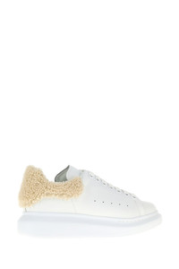 Sneakers realized in calf leather characterized by contrasting shearling heel. - Laces closure - Printed logo on the padded tongue - Padded ankle - Embossed logo on the inside - Iconic oversize sole DETAILS White leather sneakers with beige shearling heel Exterior: 100% Calf 100% Shearling Interior: 100% Leather Sole: Rubber Made in italy