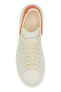 Sneakers realized in calf leather characterized by contrasting heel with printed logo. - Laces closure - Printed logo on the padded tongue - Padded ankle - Embossed logo on the inside - Iconic oversize sole DETAILS White leather sneakers with orange leather heel Exterior: 100% Calf Interior: 100% Leather Sole: Rubber Made in italy