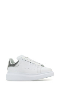 White leather sneakers with silver leather heel
