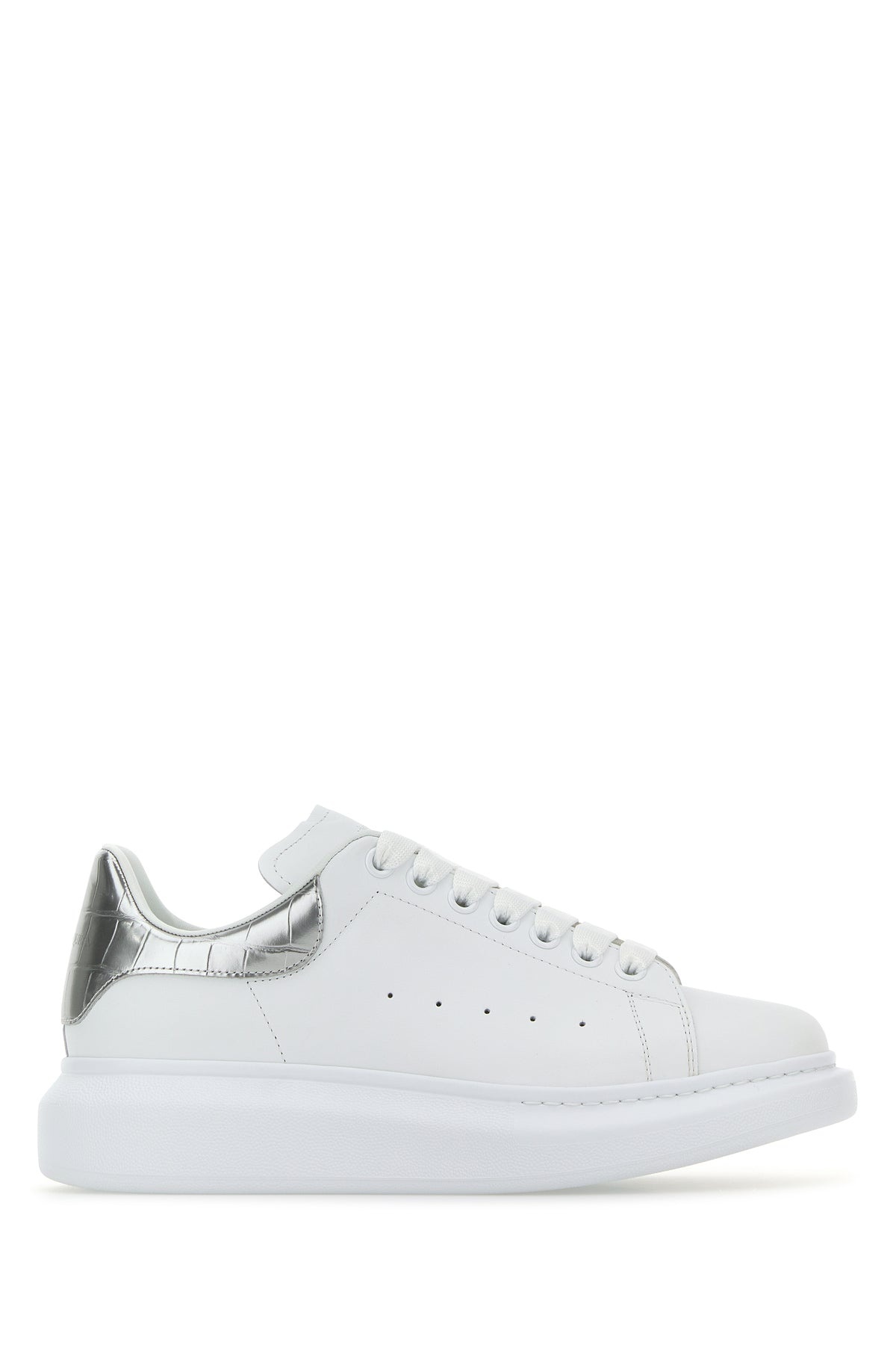 Sneakers realized in smooth calf leather characterized by contrasting laminated leather heel with printed logo. - Tonal lace-up closure - Printed logo on the padded tongue - Padded ankle - Embossed logo on the inside - Iconic oversize sole DETAILS White leather sneakers with silver leather heel Exterior: 100% Calf Interior: 100% Leather Sole: Rubber Made in italy