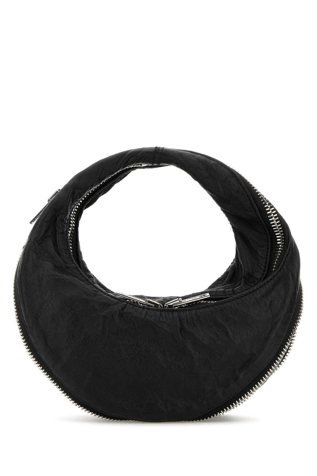Hand bag realized in creased effect leather characterized by expandable sides by zip. - A built-in handle - Adjustable detachable tonal leather shoulder strap - Zip closure - Lined interior with a patch pocket DETAILS Black leather Twist handbag Exterior: 100% Leather Lining: 100% Fabric Finishing: Silver metal Made in Width: 16 cm Height: 13 cm Depth: 7 cm Handle height: 10 cm Min shoulder strap length: 40 cm Max shoulder strap length: 58 cm