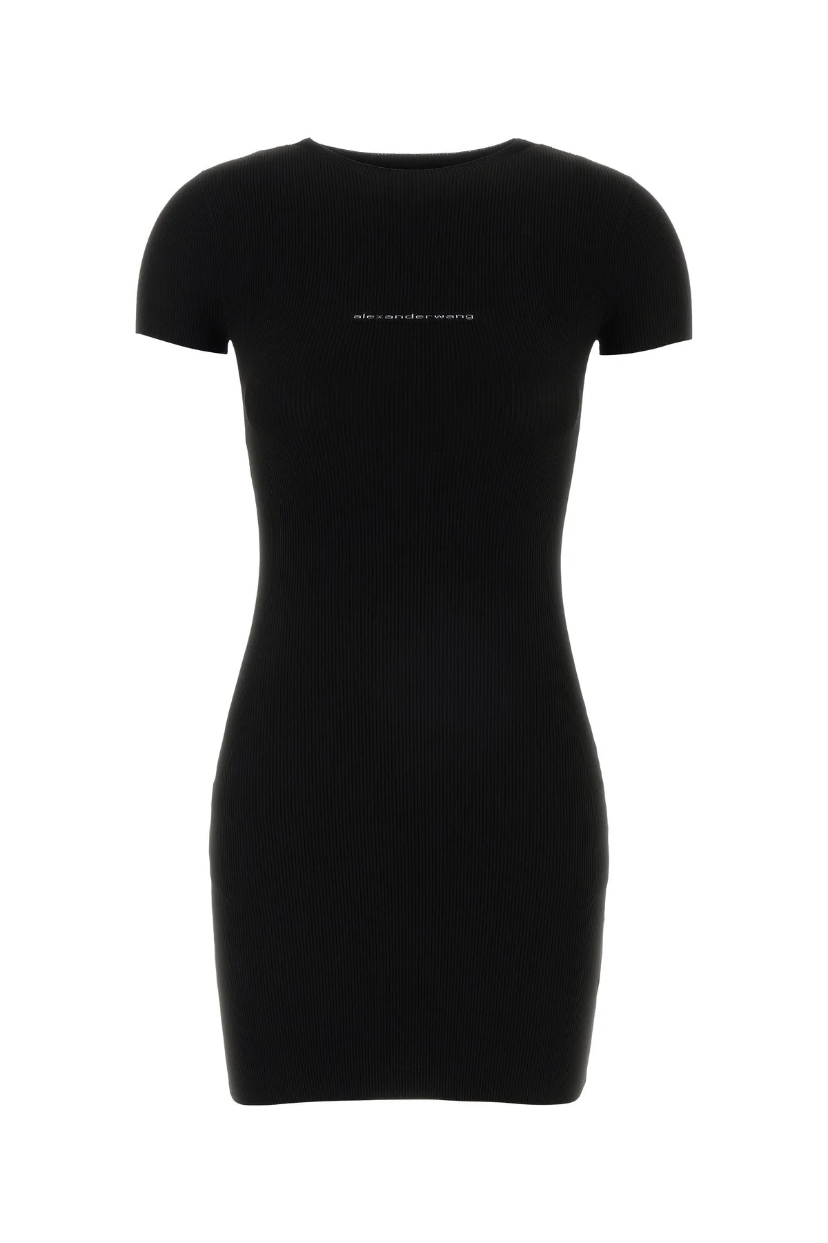 Mini dress realized in ribbed stretch jersey characterized by embroidered logo at the front. - Crew-neck - Short sleeves - Unlined DETAILS Black stretch jersey mini dress Exterior: 89% Nylon 11% Elastane Made in china Sample size: XS