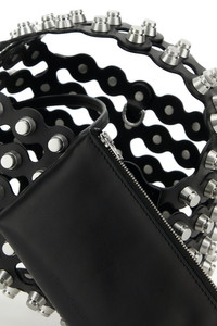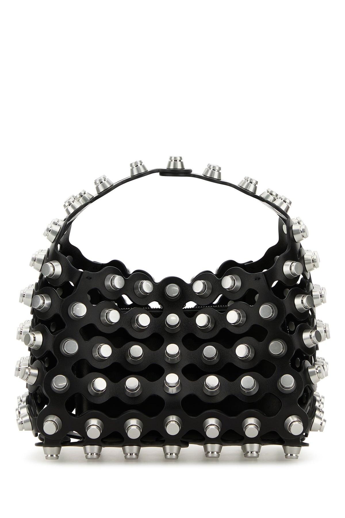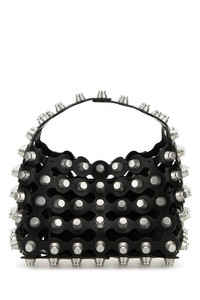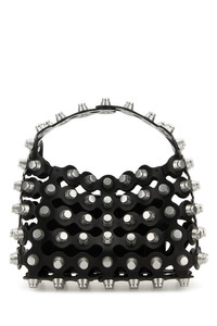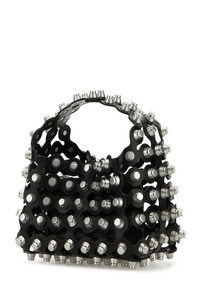 Handbag realized in leather entirely covered by metal studs. - A built-in handle - Unlined interior with a pouch DETAILS Embellished leather small Rex handbag Exterior: 100% Leather Finishing: Silver metal Made in Width: 20 cm Height: 16 cm Depth: 12 cm Handle height: 6 cm