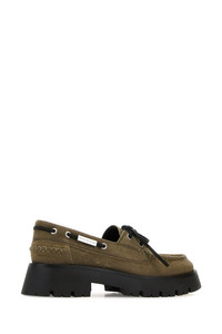 Loafers realized in suede enriched by logged metal plate on the side. - Round toe - Decorative lacing - Logoed label on the inside - Lug sole DETAILS Khaki suede Carson loafers Exterior: 100% Suede Interior: 1005 Leather Sole: Rubber Made in china