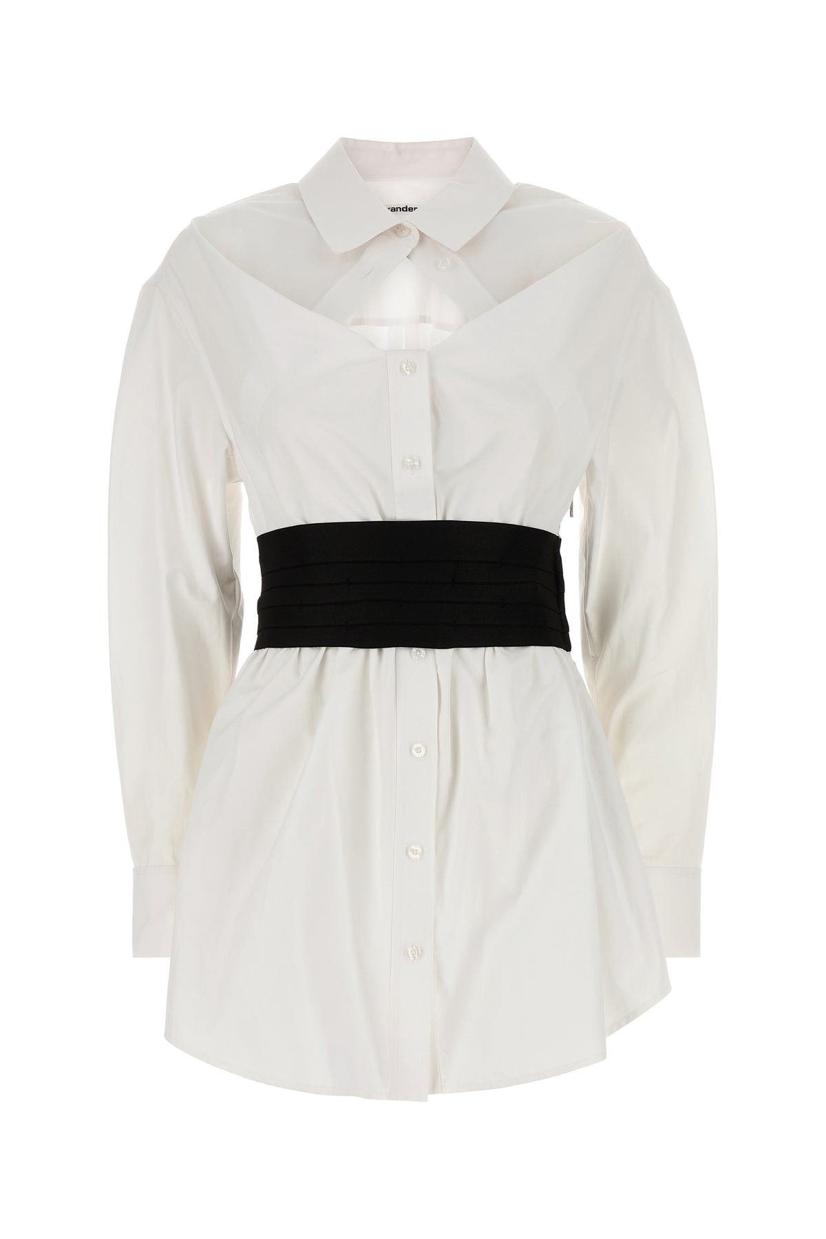 Shirt dress realized in pure cotton poplin enriched by contrasting band at the waist. - Short-pointed collar - Buttons closure - Cut-out detail at the front - Angle cuffs with button - Unlined DETAILS White poplin shirt dress Exterior: 100% Cotton Made in china Sample size: 4